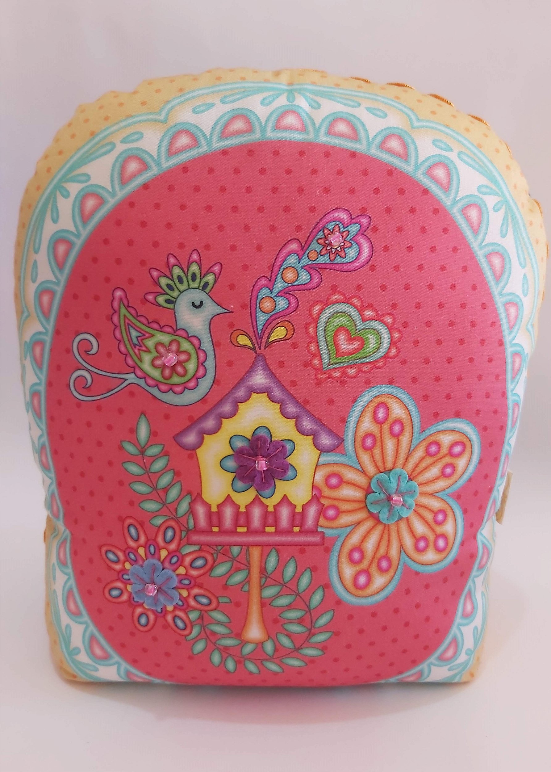 Peso de porta lindíssimo, grande, pesado, realmente segura a porta. Feito em tecido tricoline estampado na frente e tecido tricoline azul atrás.